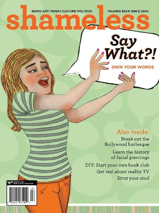 The power of words, the power of language: that’s what this issue is all about. In it, we learn the meaning of the word stud (see “Sexy. Sef-Assured. Stud,” p. 28), and question the true meaning of justice (see “Justice for Girls Makes the Case,” p. 24). And we explore the ways in which we use language to resist (See “The ABCs of Words: An Activist’s Toolkit,” p. 18), reclaim (see “What is a Bitch,” by Shameless Wire grads, p. 10) and reflect (See “This is About Having an Accent,” p. 48). With that, I leave you to eagerly await this issue, these words and this feminist act.